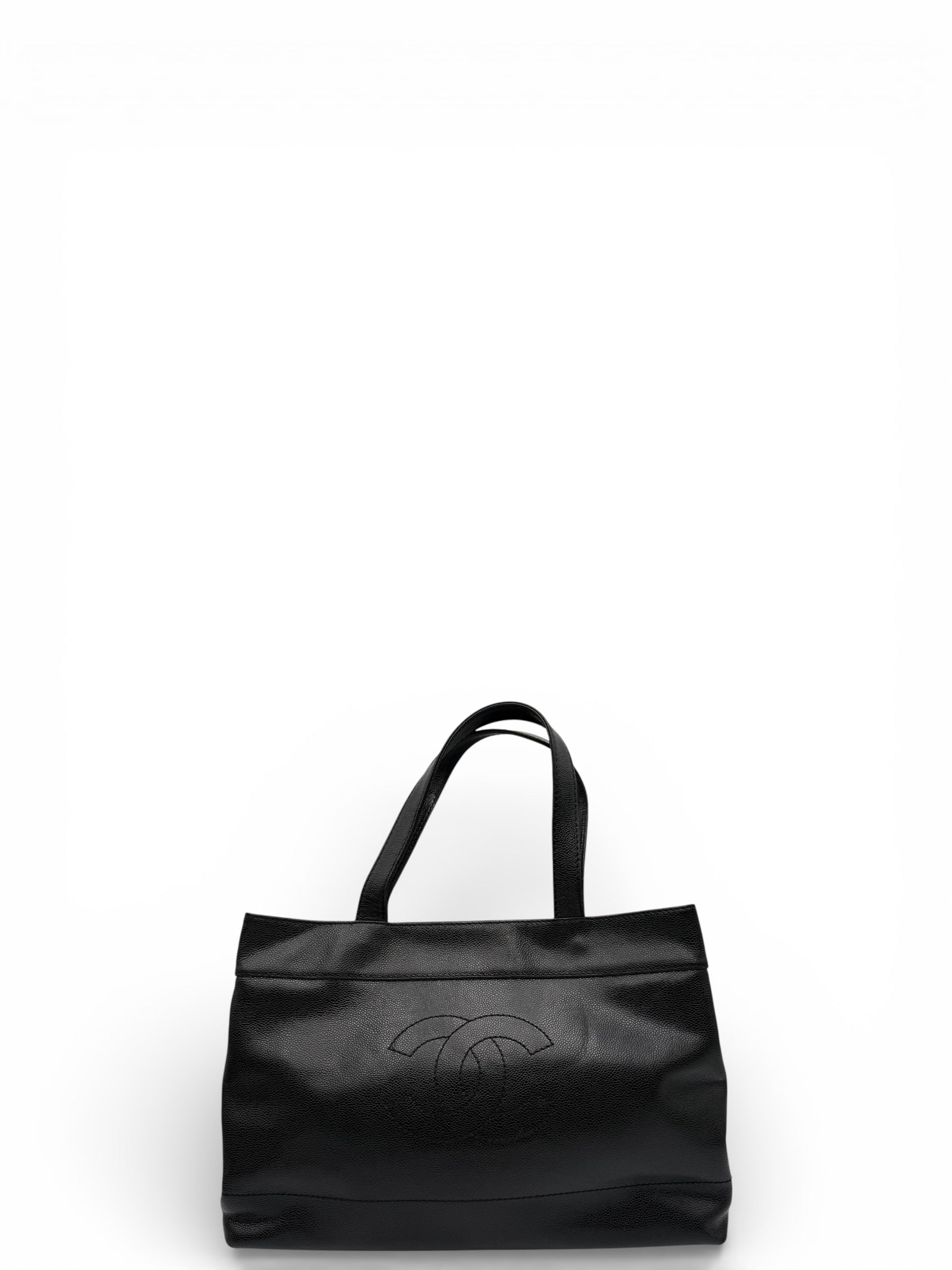 CHANEL BLACK CAVIAR CC WALLET WITH BLACK AND GOLD CC