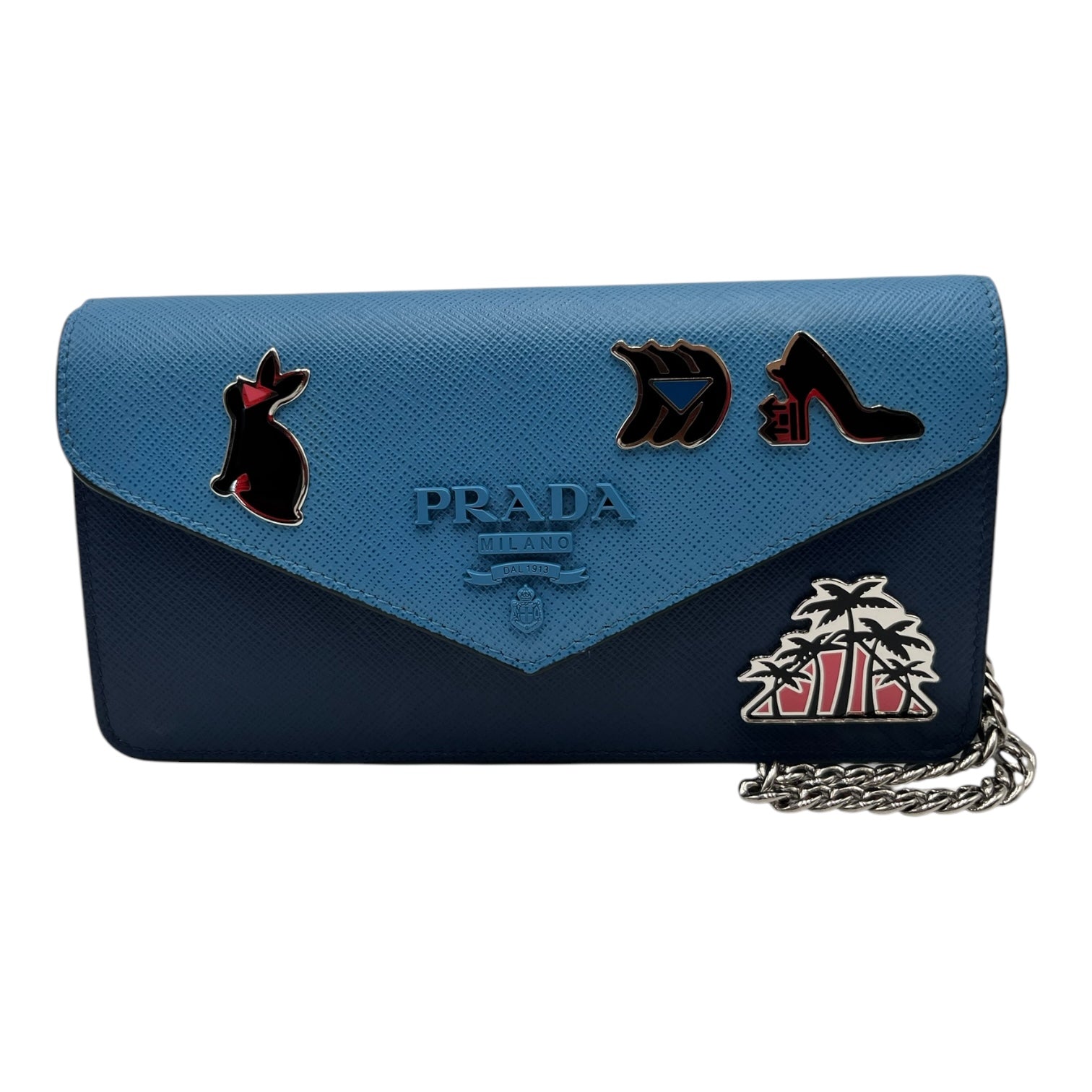 PRADA LEATHER WALLET ON CHAIN BLUE