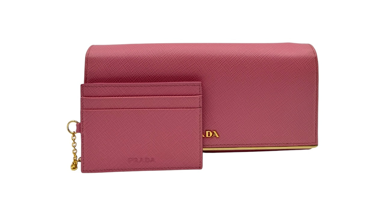 PRADA PINK SAFFIANO LEATHER WALLET WITH CARD HOLDER