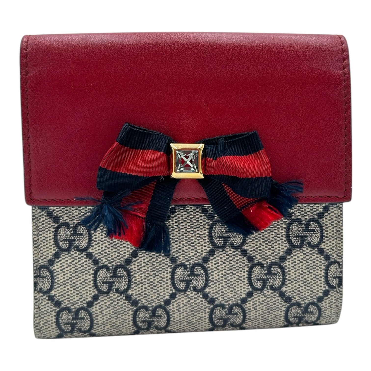 GUCCI RED/BLUE GG SUPREME CANVAS AND LEATHER FRENCH WALLET