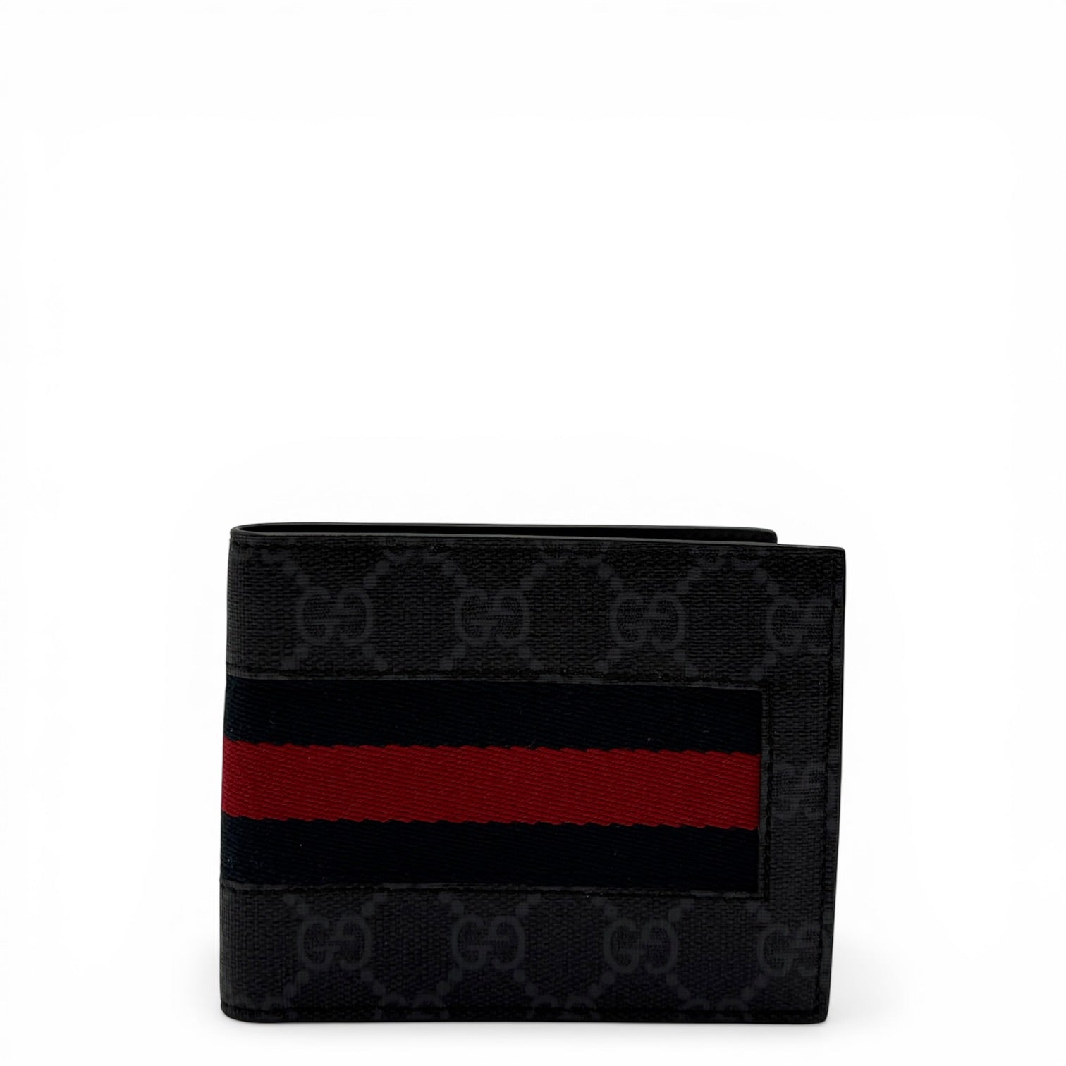 GUCCI WEB BLACK GG COATED CANVAS FABRIC BIFOLD WALLET