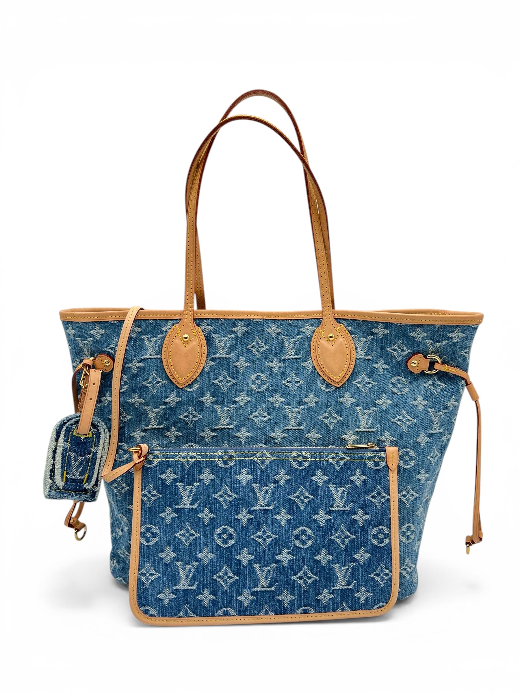LOUIS VUITTON BLUE MONOGRAM DENIM NEO NEVERFULL MM GOLD HARDWARE 2025
