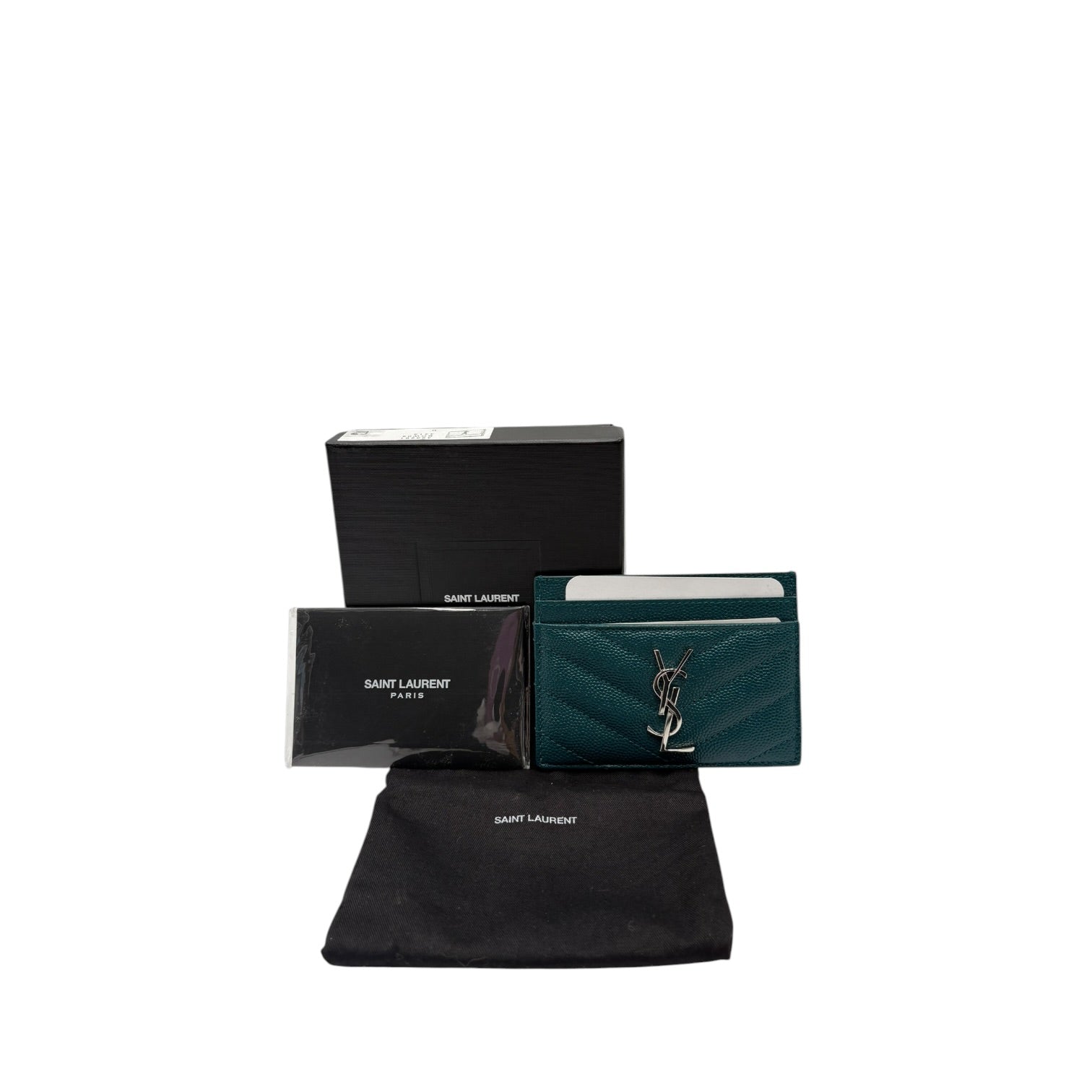 YSL GRASS GREEN CHEVRON QUILTED LEATHER CARD CASE
